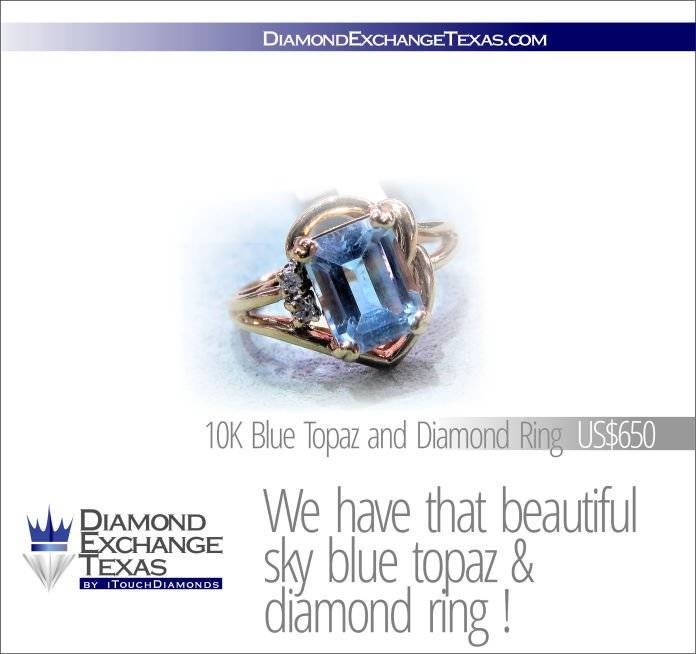 The many hues and tones of Topaz may become this beautiful light blue gem to make a diamond ring look much better.